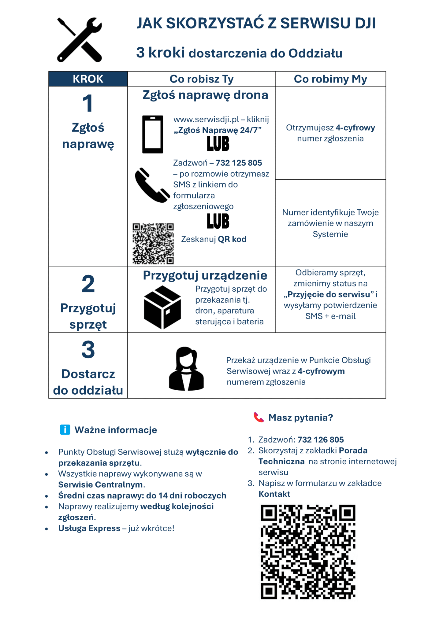 Od 2015 roku specjalizujemy się w serwisowaniu dronów DJI, łącząc pasję do technologii z najwyższymi standardami obsługi. Dzięki wieloletniemu doświadczeniu, doskonałej znajomości sprzętu i precyzji działania, zaufały nam setki klientów – od hobbystów po duże firmy i instytucje.